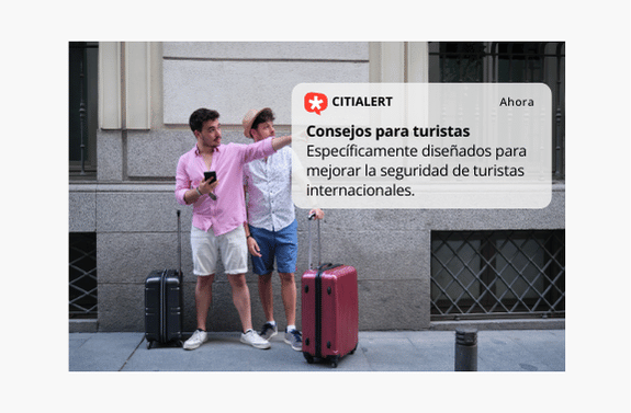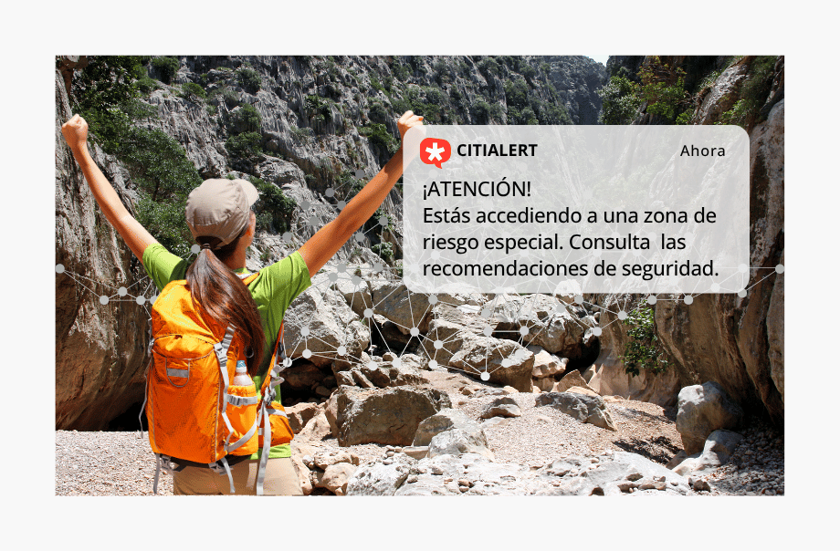 Citialert® emite consejos de seguridad fusionados con alertas automáticas emitidas por organismos oficiales, que buscan a quien las necesita, donde las necesita, cuando las necesita y en el idioma que necesita.